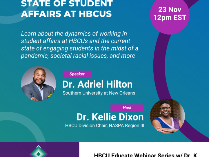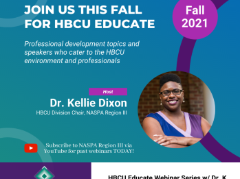 HBCUs continue to have an important contribution to higher education, especially in Region III where nearly 75% of our nation's HBCU institutions are located. In recent years, Region III has made a commitment to better serve these important colleges and universities and continues to explore ways to center the work of professionals at HBCU institutions in our conversations as a region and within the field of Student Affairs. This webinar series is an important part of our commitment.