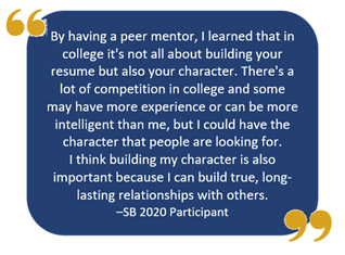 SB has been and continues to provide a supportive and holistic experience that positively impacts students’ confidence and sense of belonging through the strong collaboration between the program and multiple campus partners. We can't do it alone!