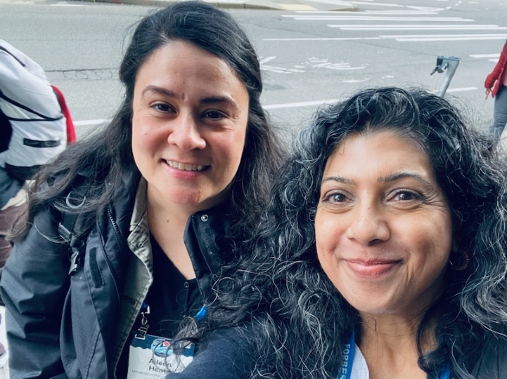Aileen and Sabina met through the SAPAA knowledge community as the academic advising liaison and professional development co-chair, respectively. One of SAPAA’s goals is to have members present at conferences, and in less than six months of meeting, Aileen and Sabina started collaborating on a proposal for the national conference in Seattle, Washington. They had regularly scheduled Zoom meetings and used Google Docs to work on their proposal in real time during the meetings and on their own. Through their planning meetings, Sabina and Aileen discovered many mutual, personal interests and similar experiences within higher education. They found themselves chatting about so much more than just their proposal and quickly realized they wouldn’t get as much work done within their hour-long meetings as they initially thought. But that was okay, it just meant they got to meet more often.