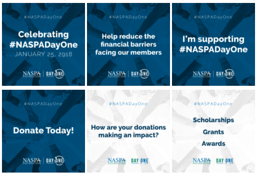 #NASPADayOneWe are also asking for your help in spreading the word about #NASPADayOne. We've created a toolkit that you can use graphics and content to share with your networks. We appreciate all of your work and support as we get ready for this event! Sample Posts: