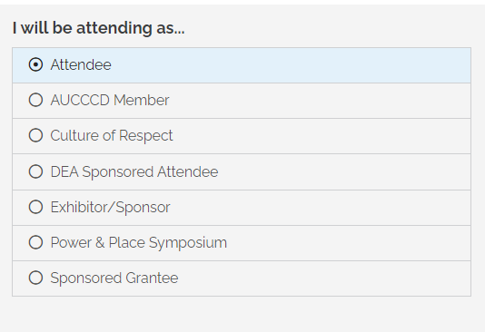 - Then in the "I'm Attending As.." page choose "Attendee" (see below)