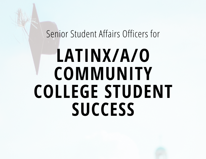 Community college leaders and senior student affairs officers (SSAO), know the jobs of the future will require some type of post-secondary degree or credential. Therefore, my belief is that our work on the NASPA CCD/LTF initiative to collaborate with SSAO’s to commit to promote Latinx/a/o higher education access and success is a social justice and inclusion issue. Proactively promoting and enhancing Latinx student success will ensure that the Latinx/a/o community has access to life transforming educational and professional opportunities. This thoughtful and intentional plan is an important step in increasing the success and graduation rates of Latinx/a/o students at our community colleges. Join us in this important and impactful work! - Elena Sandoval-Lucero, Ph.D., CCD LTF Chair, former SSAO, and campus vice president